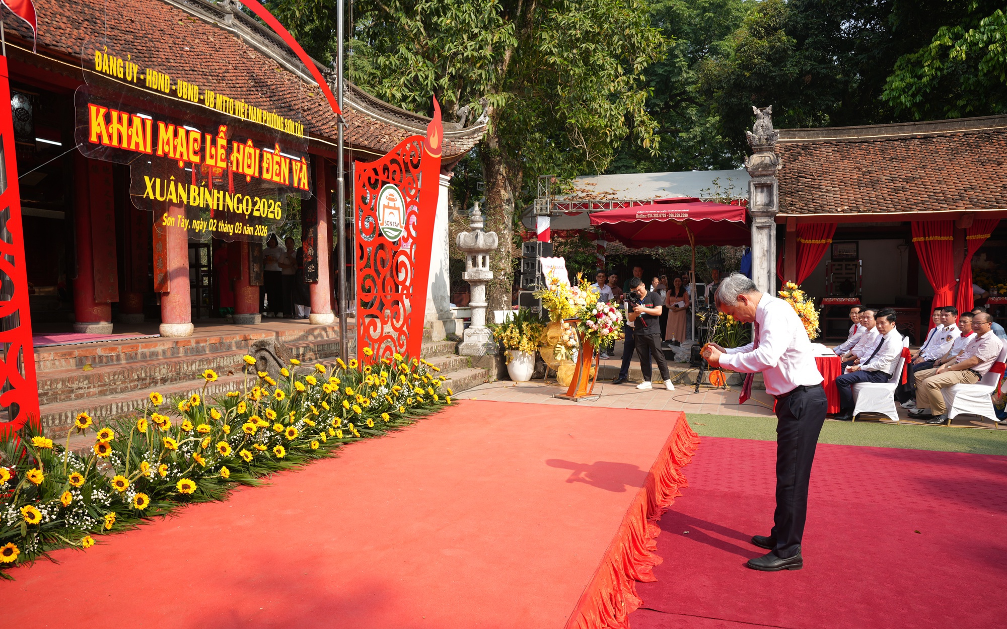 Tham dự buổi lễ có các đồng chí lãnh đạo Đảng ủy - HĐND - UBND - UBMTTQ Việt Nam phường Sơn Tây, cùng đại diện các ban, ngành, đoàn thể xã Vĩnh Phú (tỉnh Phú Thọ), phường Tùng Thiện, xã Đoài Phương và Nhân dân địa phương.